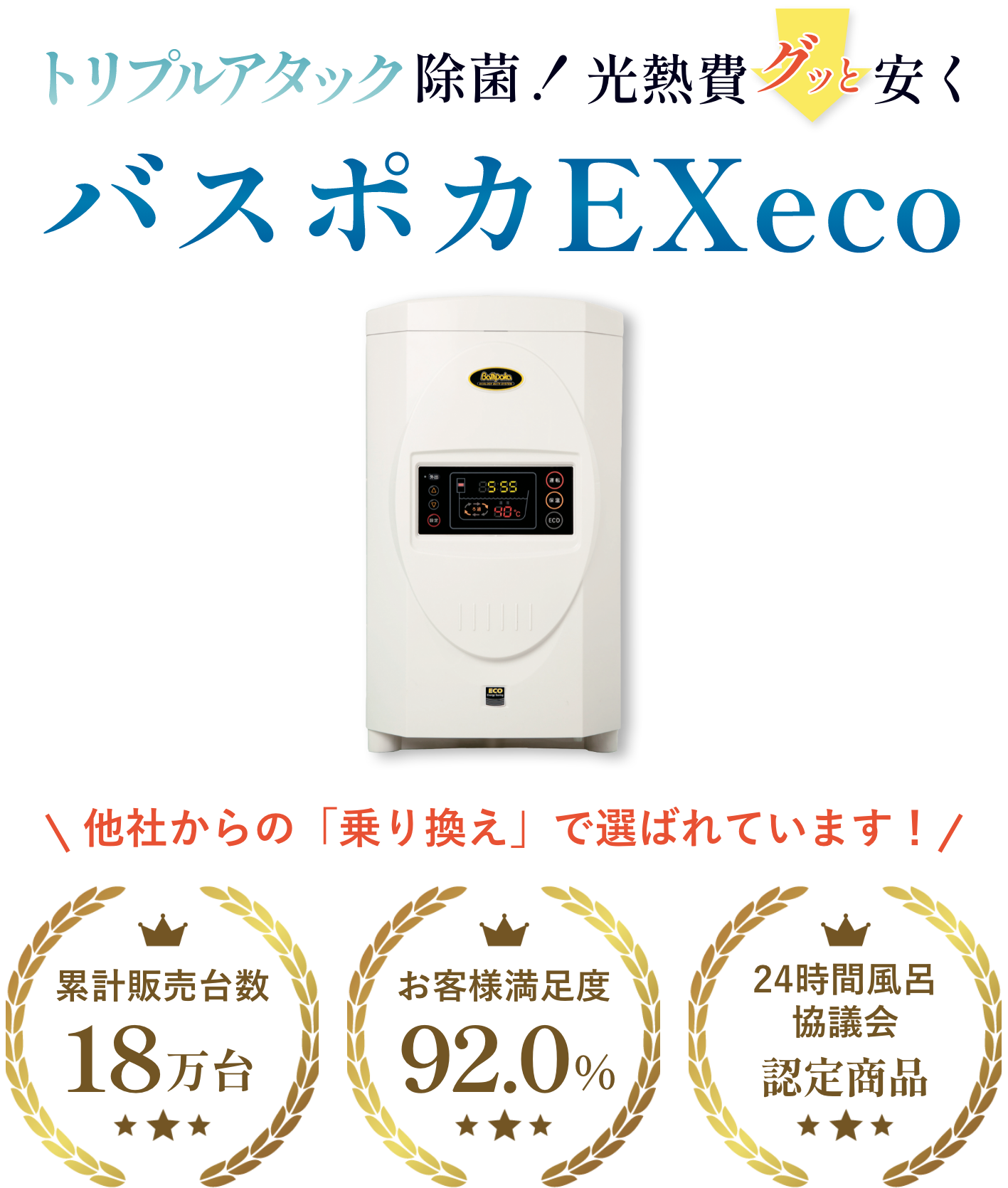長年使っていた他社製24時間風呂が頻繁にエラーを起こし、交換部品の準備にも時間がかかるとのことで修理不能に。思い切ってバスポカEXeco本体へ交換。循環ヒーターの安定感が素晴らしく、静音・省エネ・抗菌すべてが進化。設置前に受けた説明も詳細かつ丁寧で安心できました。